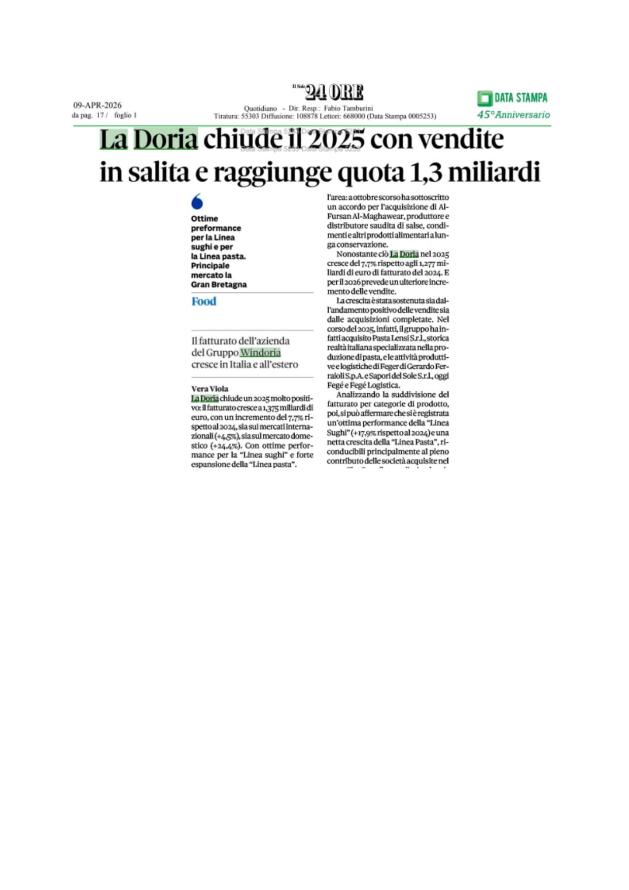BF International Best Fields Best Food Limited (“BFI”), società controllata da B.F. S.p.A., ha sottoscritto l’accordo d’investimento (l’”Accordo”) per l’acquisto da Trust Girasole, Filippo Martini, Annalisa Martini e Carla Martini (i “Venditori”) dell’intero capitale sociale di F.lli Martini & C. S.p.A. (“F.lli Martini”) da parte di una società di nuova costituzione (“Holdco”) (l’”Operazione”). F.lli Martini […]