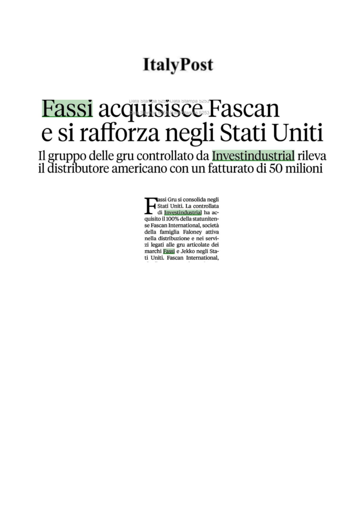 Fassi acquisisce Fascan e si rafforza negli Stati Uniti