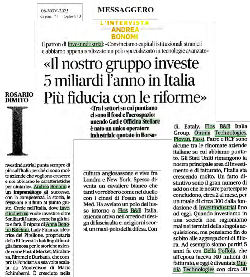 Intervista a Andrea Bonomi – «Il nostro gruppo investe 5 miliardi l’anno in Italia Più fiducia con le riforme»